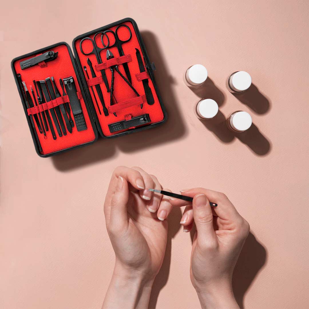 ست شامل ناخنگیر تیغه تیز، کوتیکول پوشر و ترایمر است. با این ابزارها میتوانید ناخنهای خود را به اندازه دلخواه کوتاه کرده، شکل دهید و پوست اضافی اطراف ناخن را به آرامی پاک کنید. این کار به داشتن دستها و ناخنهایی مرتب و جذاب کمک میکند و از ایجاد ترک و آسیب روی پوست جلوگیری میکند.
