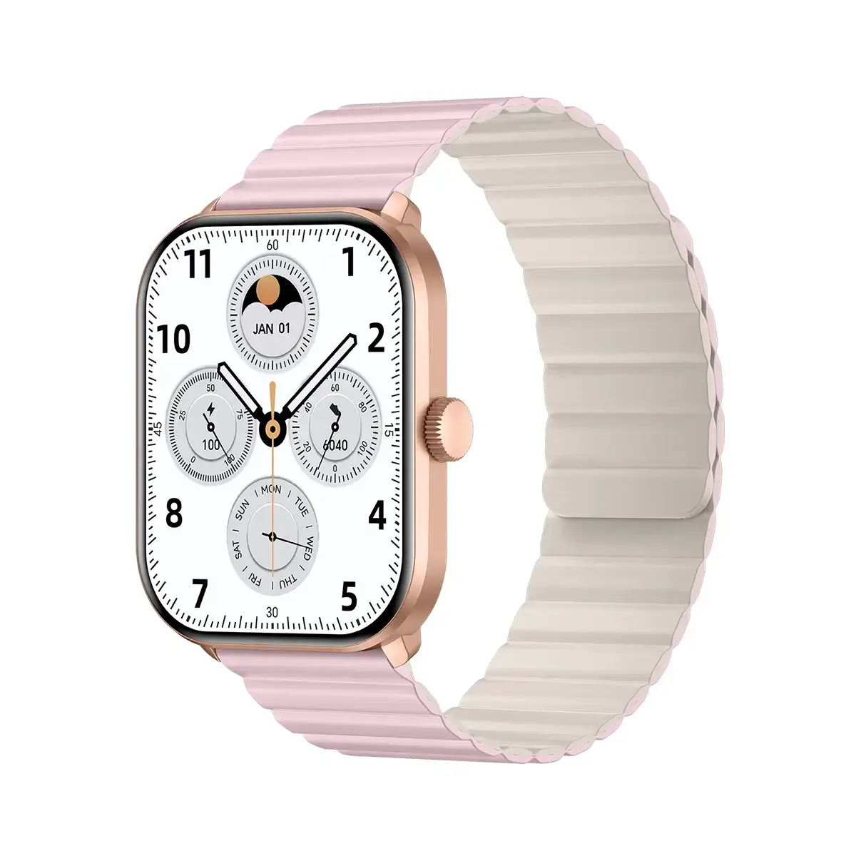 اولین چیزی که توی نگاه اول توجهت رو جلب میکنه، ظاهر شیک Glorimi GC Plus هست. قاب ساعت از PC ساخته شده و دکمه چرخشی از استیل ضدزنگ 304L طراحی شده که حس ساعتهای لوکس رو القا میکنه. این مدل در سه ترکیب رنگی جذاب عرضه میشه: