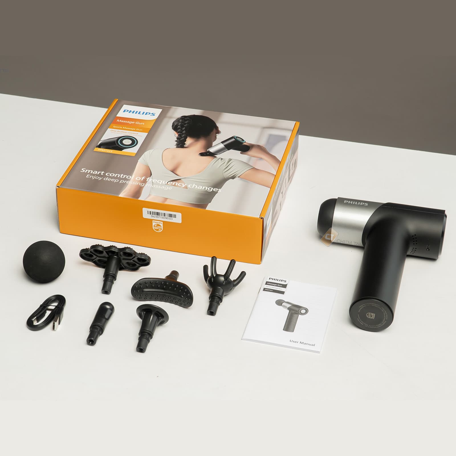ماساژور تفنگی فیلیپس Philips PPM7323 مجهز به 6 سری مختلف است که با توجه به کاربرد آن ها سری مورد نظر را انتخاب کنید. بعد از اتصال سری مورد نظر، کلید پاور را فشار دهید تا سرعت ماساژ را انتخاب کنید.