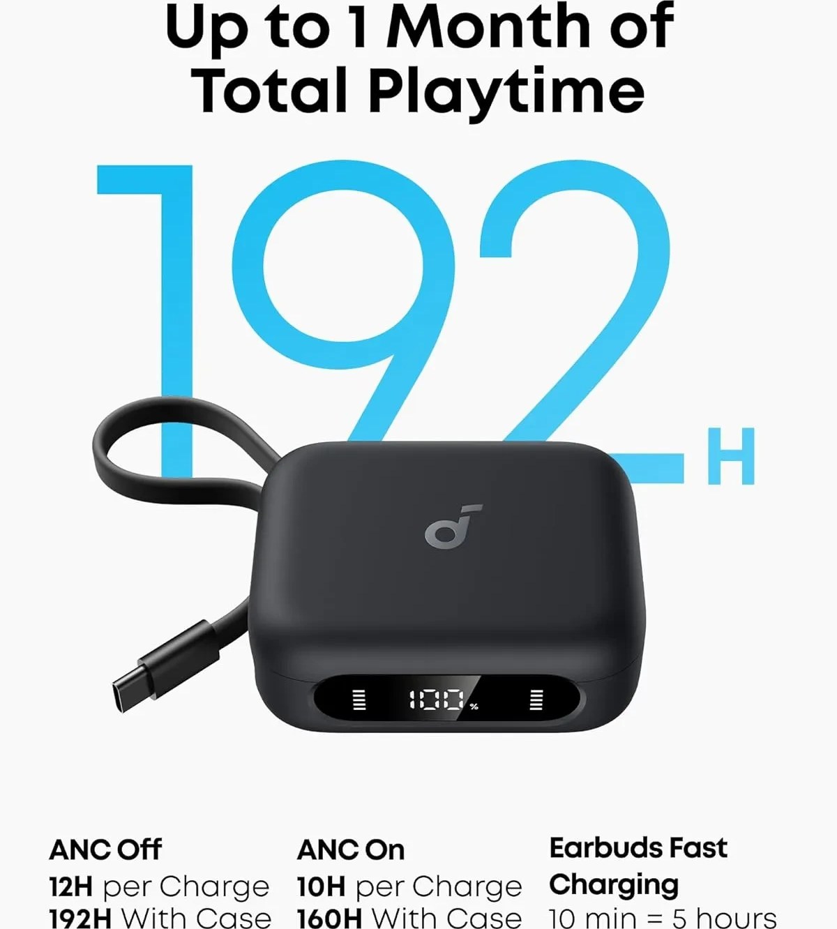 مدل Anker Soundcore P41i با طراحی جمعوجور، خوشدست و وزن سبک، برای استفاده روزمره ایدهآل است. ابعاد کوچک و وزن تنها ۱۱۵ گرم باعث میشود بهراحتی در جیب یا کیف جا بگیرد. بدنهی مقاوم و ظاهر مینیمال آن، حس استحکام و زیبایی را همزمان القا میکند. کیس شارژ نیز از متریال باکیفیت ساخته شده و دوام بالایی دارد.