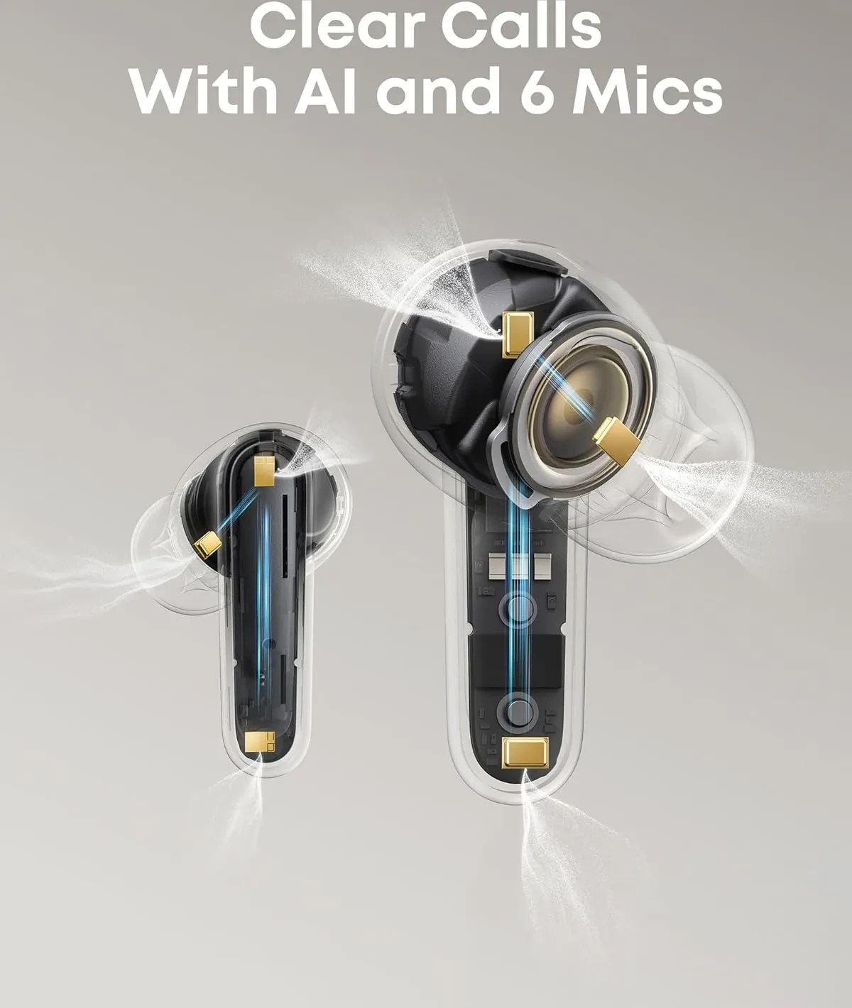 این هندزفری با فناوری حذف نویز تطبیقی، صداهای مزاحم محیط را تشخیص داده و بهصورت خودکار شدت حذف نویز را تنظیم میکند. وجود ۶ میکروفون پیشرفته و الگوریتم هوش مصنوعی باعث میشود مکالمات شما بدون صدای پسزمینه و با وضوح بالا منتقل شوند؛ ویژگیای که برای محیطهای کاری یا مکانهای شلوغ بسیار کارآمد است.