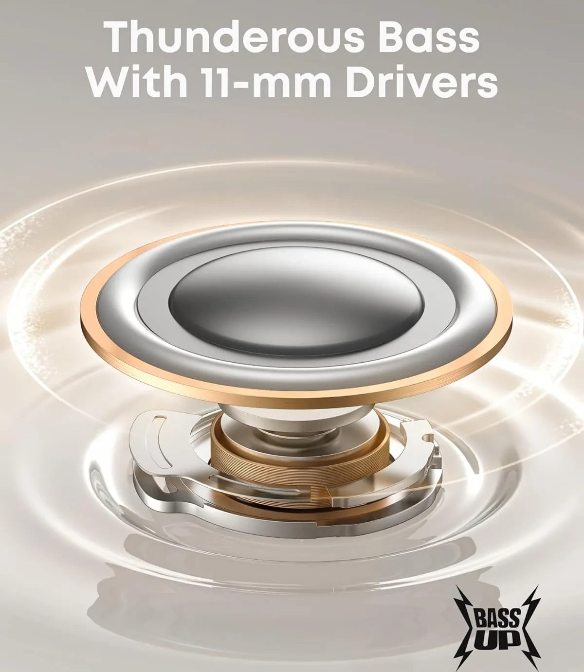 درایورهای تیتانیومی ۱۱ میلیمتری همراه با فناوری BassUp صدایی پویا، شفاف و غنی تولید میکنند. این ترکیب باعث میشود صداهای زیر و بم با تفکیک بالا و جزئیات دقیق پخش شوند تا هنگام گوش دادن به موسیقی یا تماشای فیلم، از کیفیتی فراگیر و واقعی لذت ببرید.