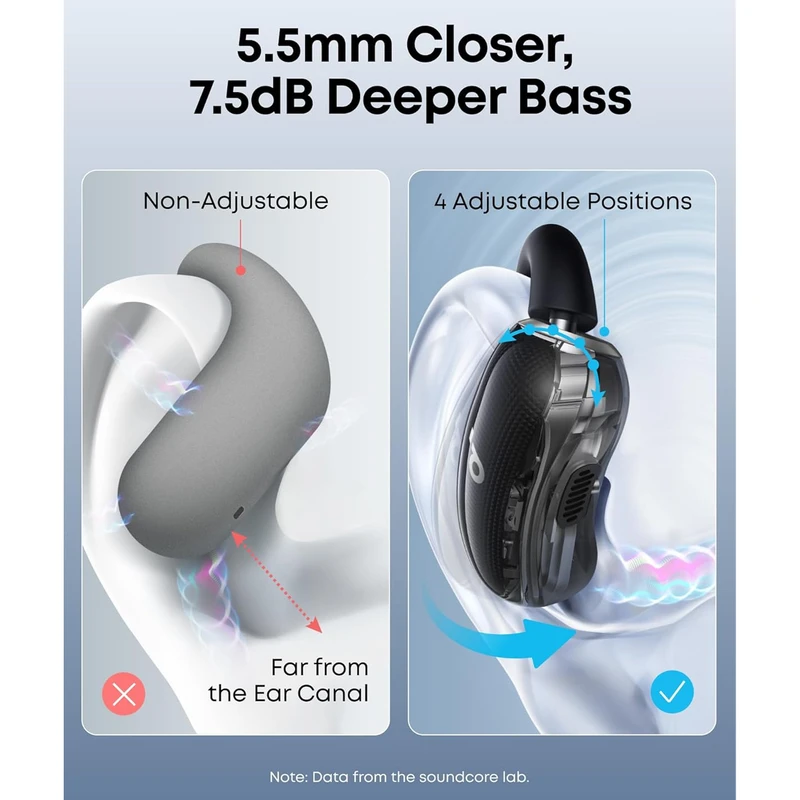 برخلاف باور عمومی که هدفونهای طراحی باز در بخش بیس ضعیف هستند، Soundcore V40i توانسته با بهرهگیری از درایورهای بزرگ ۱۶×۱۳ میلیمتری و طراحی محفظهای شبیه ساعت شنی، عملکرد بسیار خوبی از خود نشان دهد . این طراحی باعث میشود تا بیس قدرتمند و قابل قبولی تولید شود و صدا به صورت شفاف و پُرحجم به گوش برسد . یک بررسی تخصصی نشان داده که این هدفون قادر به بازتولید فرکانسهای پایین از حدود 80 هرتز است که برای یک هدفون با طراحی باز در این رده قیمتی، بسیار عالی محسوب میشود . البته طبیعتاً نباید انتظار بیس عمیق و سنگین هدفونهای اینایاری را از آن داشت، اما برای استفاده روزمره و ورزش، کیفیت صدا بیش از حد انتظار و رضایتبخش است .